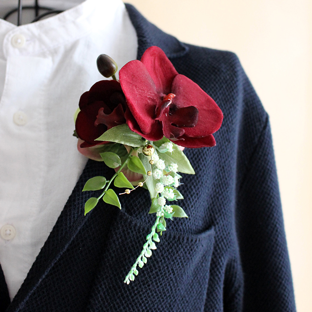 メンズもOK★胡蝶蘭のフォーマルコサージュ(ワイン)