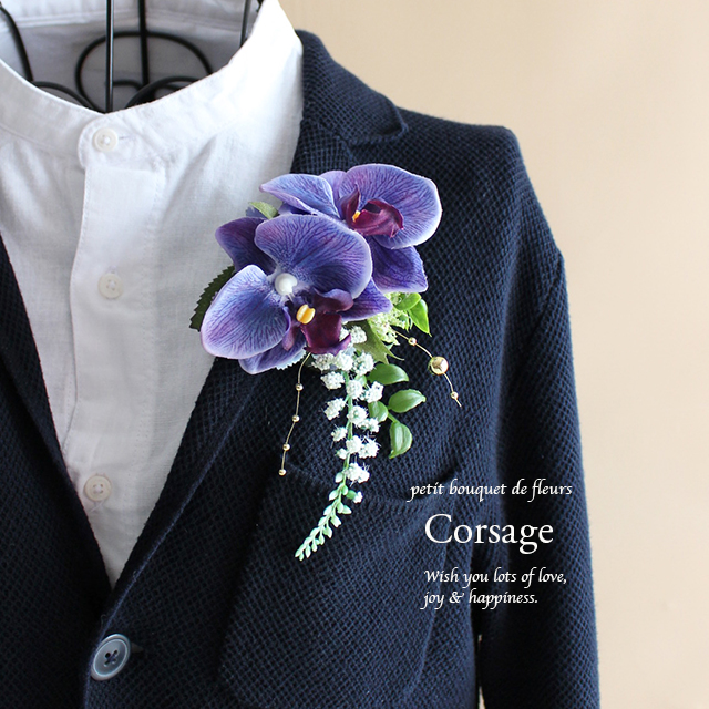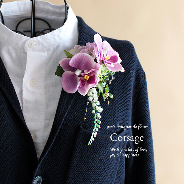 メンズもOK★胡蝶蘭のフォーマルコサージュ(パープル)