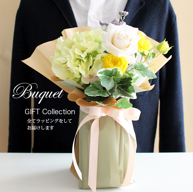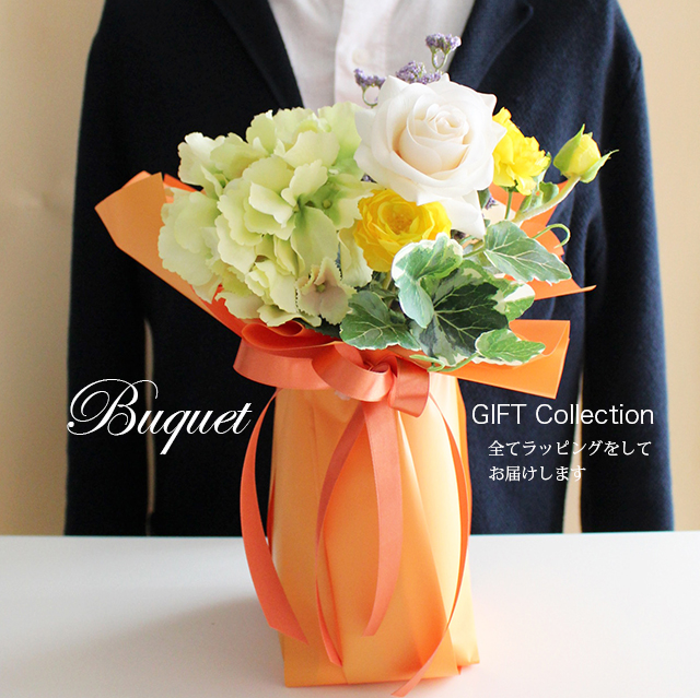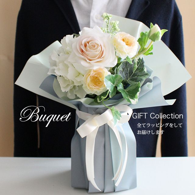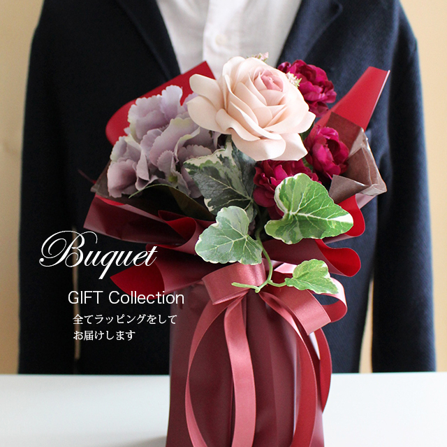・高品質のアーティフィシャルフラワー(高級造花)を使用した贈り物の花束