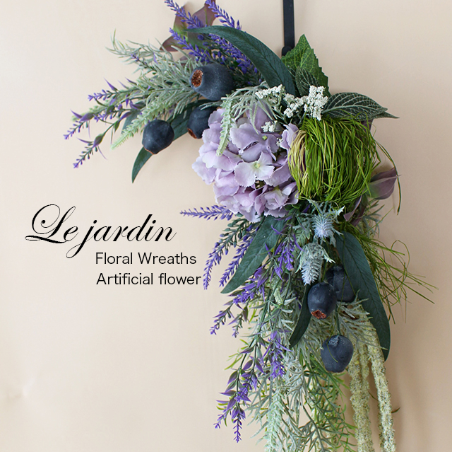 本作品のお花やグリーンはアーティフィシャルフラワー(高級造花)使用。