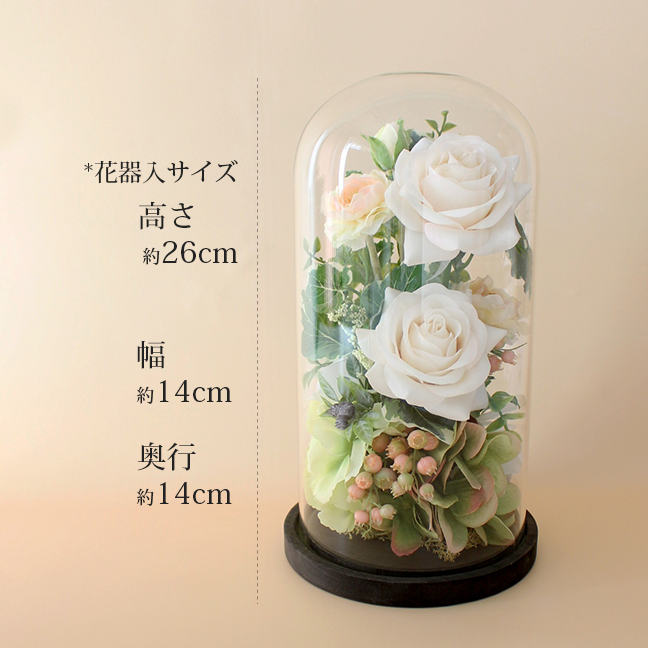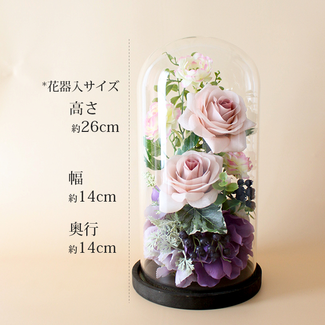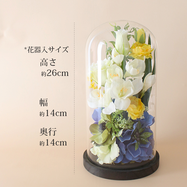 縦26cmサイズのガラスドームアレンジに