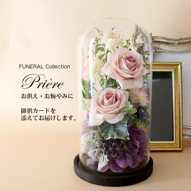 ■FUNERAL Flower Collection ウッドガラスドーム ローズ(モーブピンク)